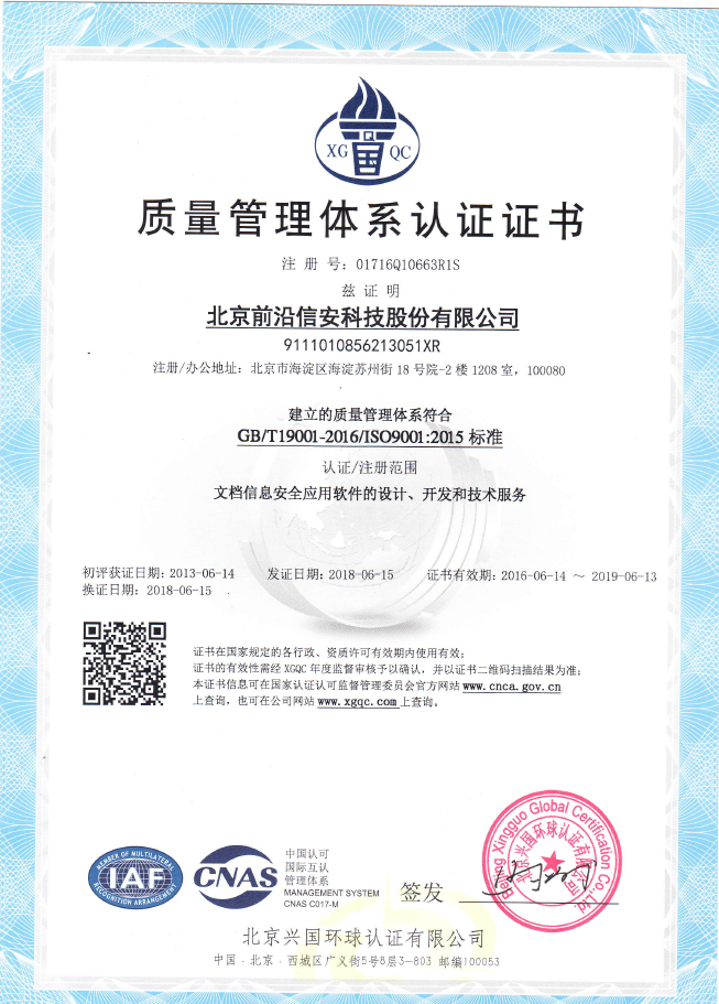 北京前沿信安科技股份有限公司营业执照(五证合一)